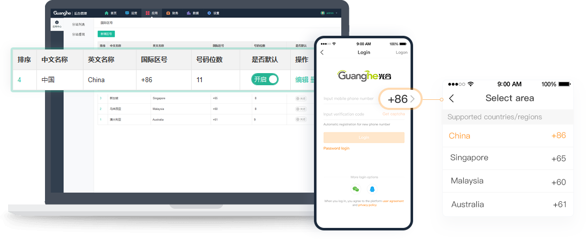 登錄/注冊支持國際電話區(qū)號(hào)選擇