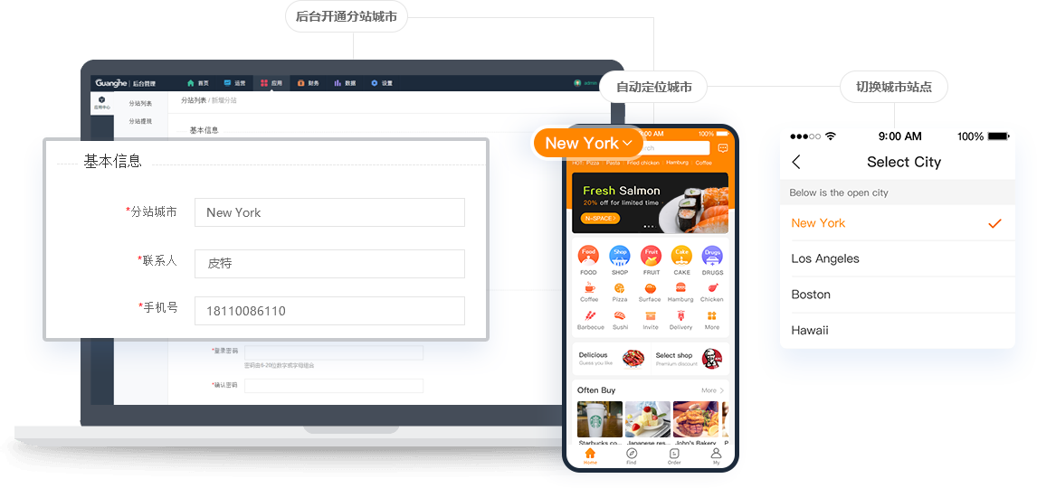 支持開通分站,多城市運(yùn)營